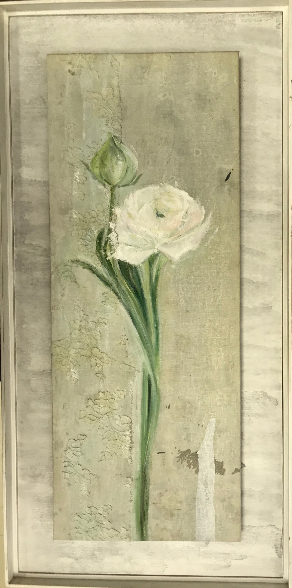 Flor Título: Flor Autor: Luciana de Alancastrogaertner Dimensões: Sem moldura: 26,5 x 67 cm Com moldura: 40,5 x 82 cm Linguagem: Pintura Técnica: Óleo Tombo: 10169