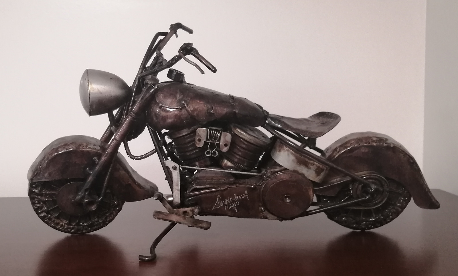 Moto – Sérgio Canale Clique para ampliar Título: Moto Autor: Sérgio Canale Dimensões: 22 x 42 x 17 cm Linguagem: Escultura Técnica: Escultura em ferro Tombo: 12980
