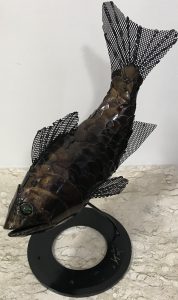 Carpa – Sérgio Canale Clique para ampliar Título: Carpa Autor: Sérgio Canale Dimensões: 38 x 31 x 22 Linguagem: Escultura Técnica: Escultura em ferro Tombo: 2668
