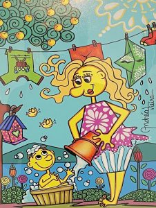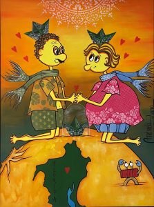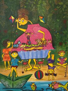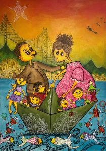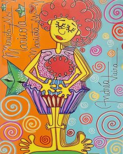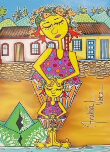 São 20 obras que representam parte da cultura do povo ilhéu, suas tradições e fazeres, resultado do que herdamos dos açorianos que aqui chegaram. São valores impressos em traços e pinceladas que nos aproximam de nossa cultura, nos reconectando com família e maternidade.